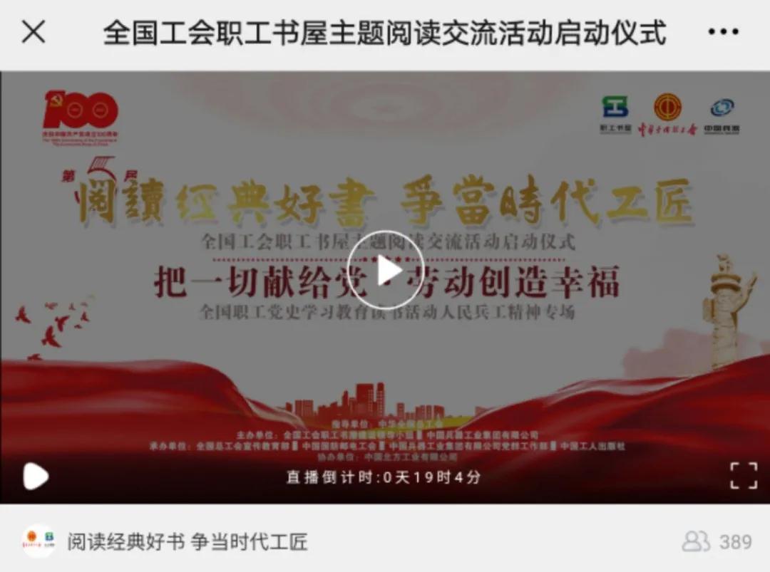 又到一年世界讀書日,激蕩在全國職工朋友心中的“閱讀經典好書 爭當時代工匠”又一次在神州大地叫響。今年,“把一切獻給黨 勞動創造幸?!?/strong>成為了閃亮的主題,在億萬職工中掀起心潮。 今天(4月23日)下午 15:00,第五屆“閱讀經典好書 爭當時代工匠”全國工會職工書屋主題閱讀交流活動啟動儀式暨“把一切獻給黨·勞動創造幸?!?/strong>全國職工黨史學習教育讀書活動人民兵工精神專場隆重開啟! 多項閱讀計劃同場發布、多本經典好書現場推薦、多位職工誦讀演繹紅色經典、勞模代表進行閱讀分享和倡議,讓我們共同在閱讀中感悟紅色經典,在活動中傳承精神力量。 這一年一度的全國職工閱讀盛典,你還在等什么! 看!在建黨百年的歷史節點,職工現場誦讀紅色經典《把一切獻給黨》,傳承以吳運鐸為代表的人民兵工精神,感悟經典的魅力和信仰的力量。 聽!來自兵器工業集團的全國勞模代表在現場,向廣大職工朋友發出閱讀倡議。分享在黨的領導下,大國重器由跟仿跟研到世界領先的蛻變。 來!聚焦現場,正式啟動第五屆“閱讀經典好書 爭當時代工匠”全國工會職工書屋主題閱讀交流活動,同時點亮專屬人民兵工精神的火炬,讓閱讀熱情傾力綻放。 40余家省級工會新媒體 100余家市級工會新媒體 200余家知名企業工會新媒體 同步直播 精彩即將上演 直播在哪看? STEP1 關注全總職工書屋微信號 點擊下方菜單欄-活動專區 觀看直播啦 還可以同步觀看圖片直播 記錄下每個精彩時刻 |