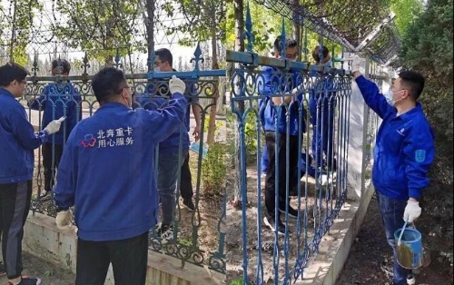 北奔重汽將黨史學習教育與“我是共青團員,我?guī)湍恪毙聲r代文明實踐志愿服務活動相結合,開展“學黨史、強信念、跟黨走”志愿服務實踐活動,組織各單位團員青年為廠區(qū)護欄進行重新粉刷。活動現場,團員青年們三五成群、內外配合,認認真真地粉刷著每一處角落,被粉刷過的護欄煥然一新,為廠區(qū)增添亮麗色彩。
